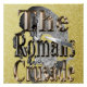 Em destaque está um crânio com uma lâmina através dele e um gladiador, com o logotipo de cruzada romanos.