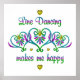 Compartilhe seu amor pela dança de linha e como isso faz você se sentir com este design colorido com corações, floresces, e as palavras - A dança de linha me faz feliz.