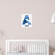 Poster "A" Dinossauro Aquarela Azul Nome da Criança Poste