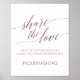 Esta elegante placa de caligrafia rosa dourada "partilhe o amor" é perfeita para um casamento simples. A design cor-de-rosa-pincelada apresenta uma poster minimalista decorada com tipografia de folha de ouro rosa-falso romântica e caprichosa. Personalize a placa com a hashtag de casamento. Nota: Este design não apresenta folha de ouro rosa real. É um gráfico de alta qualidade feito para se parecer com folha de ouro rosa.