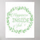 Felicidade é um gráfico dentro com coroa e coração verdes. Felicidade, amor e paz interior são sempre de dentro. Design gráfico personalizado feito com amor.