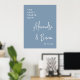 Este simples e elegante cartaz é a maneira perfeita de dar as boas vindas aos seus convidados no dia do seu casamento com um toque de elegância e estilo! Apresentando as palavras "A festa começa agora" em letras modernas de blocos brancos, com seus nomes em lindas tipografias de guião manuscritas e data de seu casamento, todas colocadas sobre um fundo azul macio e empoeirado, este sinal certamente irá causar uma impressão duradoura. Perfeito para exibir em um lugar proeminente em sua cerimônia, hora do coquetel ou recepção, ele pode ser facilmente enquadrado como um guardião após seu dia especial. Com a sua design de chic e moderna, esta poster na tendência de azul-claro empoeirado é a forma perfeita de adicionar um toque de sofisticação à vossa decoração de casamento, e dar o tom para uma celebração que os vossos hóspedes não esquecerão em breve.