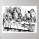 Esta imagem clássica do Tea Party, do Mad Hatter, é lindamente reproduzida numa grande variedade de t-shirts e presentes. Citação: "Acima do mundo voa, como uma bandeja de chá no céu. Grelha, brilho—"