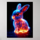 A glowing rabbit is depicted with vibrant blue and orange lights, creating a striking, futuristic appearance against a dark background. The luminous patterns suggest a digital or cybernetic style, emphasizing the contrast between the bright colors and the darkness.