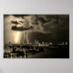 Lightning strike on a dark blue sky over the Intracoastal Waterway, Florida.