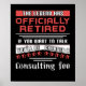 Este presente de aposentadoria diz que a lenda se aposentou se você quiser falar que será cobrada uma taxa de consultoria.