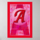 Composição digital criada inteiramente da letra A, em várias formas, reproduzida em tons sorteados de vermelho — de rosa a escarlate, crimson e burgundy. Esta impressão pode ser o presente perfeito para Adam, Alan, Alissa, Andrew, Anita, Anna, Anthony, Ashley, etc.