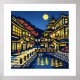 A Moonlit Waterside Town captures a quiet moment in a traditional waterside town, softly illuminated by moonlight and warm lanterns.