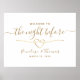 Elegante, moderno, minimalista Cartão de boas-vindas de jantar de ensaio da noite anterior com coração de corda dourada e script de caligrafia manuscrita simples.