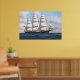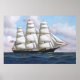 Trata-se de uma reprodução renovada e aprimorada de um clipe produzido a partir de uma cópia da pintura original de óleo inspirada por Antonio Jacobsen, prolífico final dos anos 1800 e início dos anos 1900, pintor de arte náutica. Expandimos a imagem e retocamos usando ferramentas de IA e Photoshop para restaurar detalhes e vibrações. O trabalho de arte chama-se The American Clipper Flying Cloud At Cheio Sail. Donald McKay construiu um cliper extremo, construído em Boston, a Nuvem Voadora, despedaçou a rota de Nova Iorque para São Francisco em 89 dias, 8 horas, navegando sob o Capitão Josiah Creesy com sua esposa, Eleanor Creesy, como o navegador nas cartas. O navio navegou para a Califórnia como parte da era Dourada Rush. Mais tarde, ela estava vinculada à Austrália e ao comércio de madeira. Eventualmente, ela conheceu seu destino quando ela começou a correr em 19 de junho de 1874, no Bar da Ilha Beacon, Santo John, New Brunswick. Esse trabalho de arte está no estilo clássico de Antonio Jacobsen, o prolífico cronista de navios, que capturou linhas de casco, vaias e estado do mar com precisão inigualável.