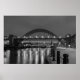 Longa exposição de preto e branco da ponte Tyne à noite. Em segundo plano estão a Ponte Swing, Ponte de Alto Nível e Ponte Metro QEII.