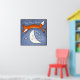 Raposa branca salta sobre a lua dormindo, as estrelas parecem animá-lo. Uma imagem divertida para o berçário de um bebê, a creche, a escola e qualquer outro lugar onde a arte infantil fosse bem amada. Design original é de Christie Black of Creations do Coração.