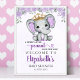 A lovely design for your baby shower for a girl features a beautiful purple watercolor elephant, all set against a pretty purple and black font with the caption "A Sweet Little Peanut is on Her Way." Perfect for welcoming that sweet little girl on the way! Personalize this baby shower invitation for a girl by adding your own event details.