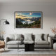 Majestosas montanhas se erguem sob um céu dourado e azul, envoltas numa névoa serena. Uma delicada teia geométrica sobrepõe-se à cena, transformando-a num sonho surreal onde a natureza bruta encontra a arte suave. Cores vibrantes, vegetação luxuriante e o contraste entre realismo e abstração criam uma obra que inspira paz e admiração—perfeita para quem busca conectar-se com a magia do mundo natural.