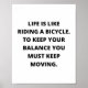 A vida é como andar de bicicleta. Para manter seu equilíbrio, você deve continuar se mexendo.