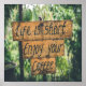 A vida é curta, aproveite seu café. Presente perfeito para o amante do café em sua vida. Com lindas árvores verdes no fundo para adicionar uma pequena natureza à sua vida.