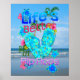 Muito colorida e design tropical comemorando Chinelos vestidos, vida em ilhas e tempos na praia. Chinelos com padrão havaiano de Máscaras de Tiki e tartarugas marinhas, com palmeiras, flores de hibisco e tartarugas de mel. A Vida É Melhor Em Chinelos