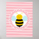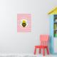 Este design apresenta uma abelha grande e engraçada com fundo de bolinhas rosa e listras.