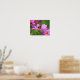 Pouca abelha ocupada trabalhando em um delicado impressão poster de flor rosa do cosmos. Fotografia da Flor por Susan.