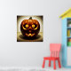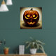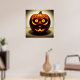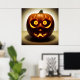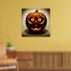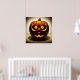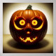 Abóbora esculpida e iluminada com uma expressão assustadora, perfeita para temas, decorações e festas de Halloween.