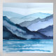 Poster Abstract Blue Watercolor Landscape Mountains Ocean