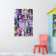 A wonderful messy, grungy mix of paint strokes, splatters and marks in a colorful palette of purple, pink, blue, green, yellow, black and white.