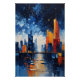 A vibrant abstract night skyline created with expressive impasto-inspired strokes. Deep blues, cerulean accents, and warm vermilion highlights blend into a dynamic cityscape full of texture, depth, and artistic energy. Perfect for modern interiors, creative spaces, and anyone who appreciates bold contemporary art on a clean poster format.