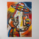 Poster Abstract UFO Cat Colorful Cubist Cat