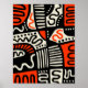 Um desenho abstrato, desenhado à mão, em preto, vermelho alaranjado e creme.