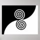 Abstrato com formas geométricas em círculo espiral a preto e branco. Espirais simbolizam a energia cósmica sagrada presente em tudo. A dupla espiral representa equilíbrio e criatividade. E está no centro da vida como DNA composto de dupla hélice!