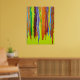 Perfeito para decoração doméstica ou de escritório - um design abstrato de arte com tinta colorida grossa do arco-íris pingando no trabalho de arte contra um fundo amarelo claro e néon. Este tipo de pintura de abstrato serviria a uma grande parede em uma casa ou escritório. As cores brilhantes e quentes certamente criarão um ponto de conversa em seu ambiente.