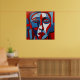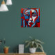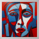Uma abstrato surpreendente face em tons azuis e vermelhos ousados, intensidade e tranquilidade combinadas.