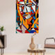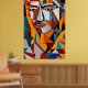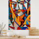 Poster Abstrato com face colorida Cubismo Vermelho Roxo A