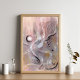Esta arte abstrato moderna com tons roxos e detalhes brancos, pretos e laranja foi criada com mídias mistas, e representa uma fantasia artística de profundidade em uma chave moderna que pode trazer um senso de serenidade ao seu ambiente através desta Poster.
