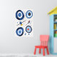 Abstrato de dança de dimensão circular. Uma coleção de bolhas cósmicas, onde pontos dançam em harmonia, sussurrando segredos do universo através de círculos azuis vibrantes.