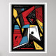 Arte angular dramática e ousada apresenta linhas em negrito, cores vibrantes e formas geométricas em vermelho, amarelo, azul, preto e branco. trabalho de arte de excelente para um escritório, dormitório ou qualquer lugar que você queira cores ousadas e abstrato artística expressiva.