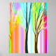 Poster em abstrato de árvores modernas num efeito de aquarela de pastéis multicoloridos