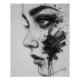 Um close-up virado para a esquerda do olho da mulher e do osso da face, rendido com forte abstração através de manchas de tinta inchadas e escovas espontâneas. Apenas uma porção de seu rosto é visível, gradualmente desaparecendo em branco, criando uma composição impressionante e enigmática que enfatiza o humor e o mistério através de braçadas expressivas.