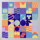 Padrão geométrico de abstrato feito com formas simples e cores claras e vívidas. Fundo de composição geométrica. moderno,padrão,abstrato, geométrica,arte,trabalho de arte, fundo,,negrito,brilhante,círculo,colorido,contraste,legal,cobrir,criativo,design,vintage,retrô,ilustração,