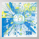 Um sol caprichoso em um estilo de arte de palavras-abstrato escrivado e bagunçado, azul e amarelo.