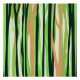 Abstrato, imagem estilizada de uma floresta, com linhas verticais representando árvores em tons de verde, laranja e preto. As formas geométricas e a paleta de cores limitadas criam uma representação minimalista e evocativa de uma paisagem florestal.