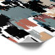 Interpretação abstrato de um design de camuflagem em uma paleta colorida de castanho, preto, cinza, bege, esticado e verde.