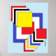 Este abstrato geométrico de Richard H. Fay apresenta uma matriz de quadrados nas cores primárias de vermelho, azul e amarelo, bem como preto e branco.