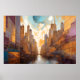 Poster Abstrato Watercolor Painting Dourada Cityscape 3:2