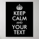 Mude o design de texto nesta antiga vintage clássica "Mantenha calma e continue ligado" poster. Coroa branca e texto em bloco. Crie uma poster de paródia para sua parede. Você pode mudar a cor preta do fundo.