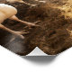 Um grupo de perus é colhido num celeiro de madeira iluminado pelo sol, com um peru a segurar uma placa que diz "Coma Pork".