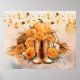 Cartaz de Ação de Graças Ocidental com botas de cowboy, flores e abóboras.