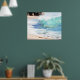 Esta renderização de aquarela de ondas caindo no litoral é uma peça maravilhosa. Esta bela pintura traz a beleza da praia para a sua casa e dá prazer sem tempo.