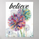 ACREDITE! Poster colorida e inspiradora. Arte de dandelion cúmplice, cegueira, capricho e desejos, sonhadores, Sonho sim, melhor ainda, ACREDITE!