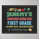 Um cartaz divertido para comemorar o primeiro dia de aula do seu filho, completo com o nome da escola e data.